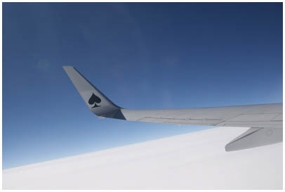 そして、そのときに今かなーり叩かれてる?そして大臣さんにも叱られてる?スカイマークに乗っていったのですが(だって直前予約でも安いんだもん)、いやー実は快適だった!初めてのったのですが、飛行機は新品みたいだし(B737-800という小さいけど、新鋭機?らしいです)、機内でお酒も飲めるし(ただし、有料。でも空港より全然安い!)、なかなかだった!で、翼の先っぽのウィングレットに可愛いマーク発見。銀英伝に出てくる戦闘機のペイントみたいだったので、窓からパシャリ。オーブが写ってるって?気にしないっ。