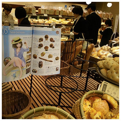 で、で、氏と記念写真とってもらってご機嫌モードで、近くのサンジェルマン(最新刊「彼女と明日のパンと夏色の空。」参照♪)に寄ったら、なんと「彼女と明日のパンと夏色の空。」現物が店頭にディスプレイされてました!わわ、知らなかった。これはもの凄ーく嬉しいかも!