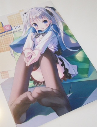 そして、左お隣さんだったのが焼けました?さん。C81は「焦げました」として出展していましたが、焼けました?→焦げました的センスが既に素敵。新刊は、「膝上靴下本.ini」B5サイズ4C16Pのイラスト本。タイトルからわかるように、全編ニーソ装備の可愛い女のコの画集。そのイラストの放つ可愛さの破壊力は、ずばり、メガトン級です!(表現が昭和入ってる!?)